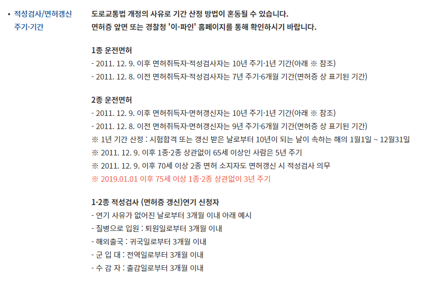 - 갱신 신청 시, 일부 운전자에 한해 교통안전 교육 이수 또는 간단한 신체검사가 요구될 수 있습니다.