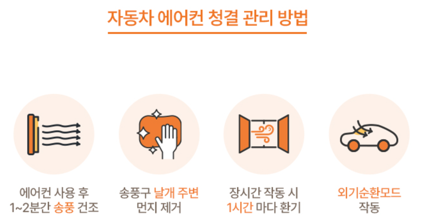 이는 단순히 에어컨관련 냄새가 아닐수도 있으니 여름철에는 차량내부의 습도조절에 신경써 주시기 바랍니다.