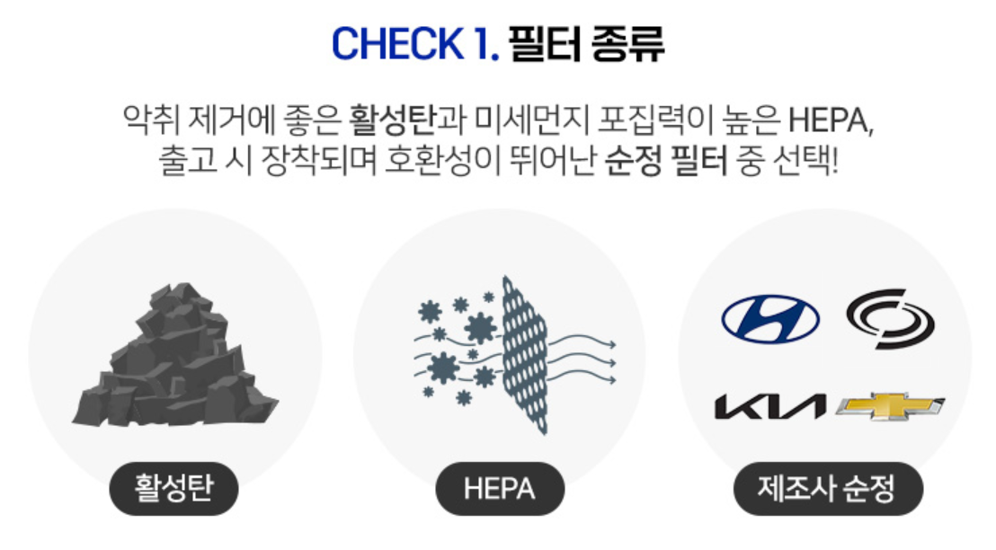 에어컨 바람이 약하거나 차갑지 않고, 에어컨에서 곰팡이 냄새가 난다면 자동차 에어컨필터를 교체하시기 바랍니다.